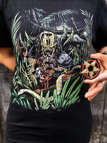 "Predator" is a full-color screen printed shirt drawn by our own Jimmy Giegerich.
